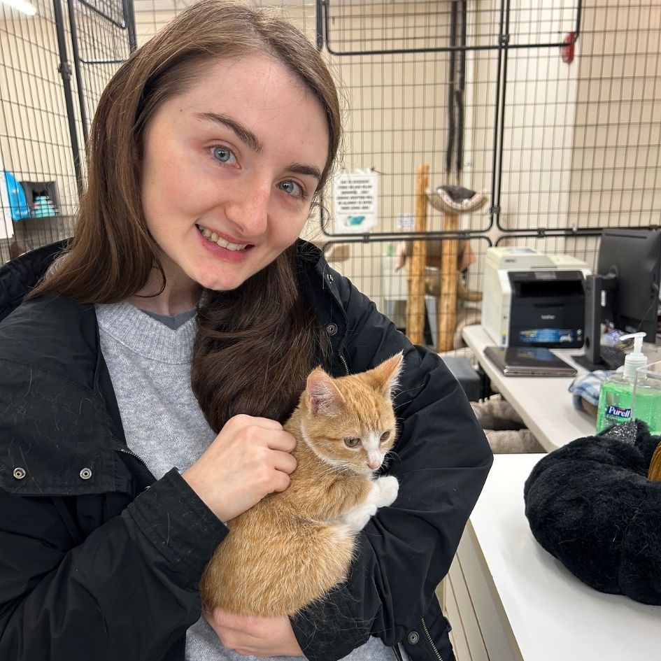 We have a one-year-old orange cat named Joanie. Livi grew up with cats and dogs, but Joanie is a first pet for Dani. She has totally and completely changed Dani’s life and opened her heart in ways she never knew existed. Joanie loves to play, and she always wants to be with us. If we are in the kitchen cooking, she is there. If we are in the living room watching TV, she watches with us. If we’re eating, she loves to eat alongside us. She instantly became a part of the family, and even Dani’s Grandma, who never liked cats before, asks for Joanie’s pictures every day. She is shy around new people but warms up quickly and will let anyone pet her, play with her toys, and especially give her treats. She is the sweetest and most gentle pet and is great with kids of all ages.