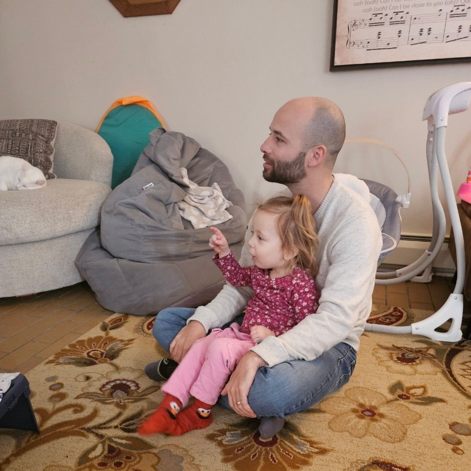 Brian starts his day with a yoga class a couple of times a week and then heads into his home office for the workday. We are so lucky that Brian can work from home and has so much flexibility. In the evenings, he spends time reading, playing games, or watching his favorite sports teams (Yankees, Giants, Maple Leafs).